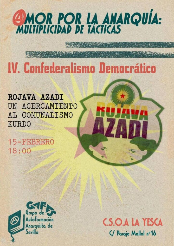 El 4º Bloque del ciclo Amor por la Anarquía: Multiplicidad de Tácticas tratará sobre el Confederalismo Democrático.
