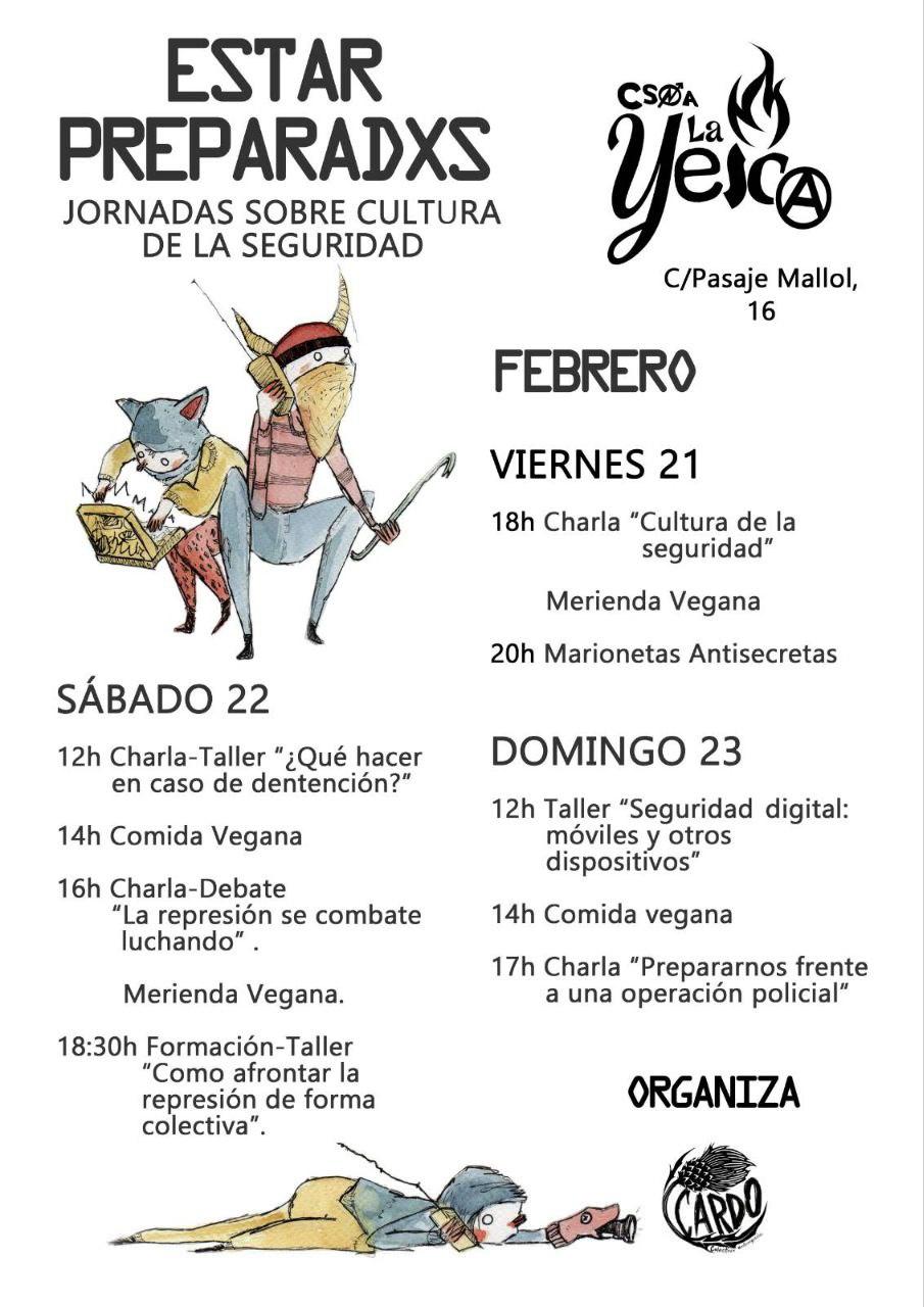 Los días 21, 22 y 23 de febrero tendremos Jornadas sobre Cultura de la Seguridad, organizadas por CARDO, colectivo antirepresivo que forma parte de la asamblea anarquista de Sevilla.